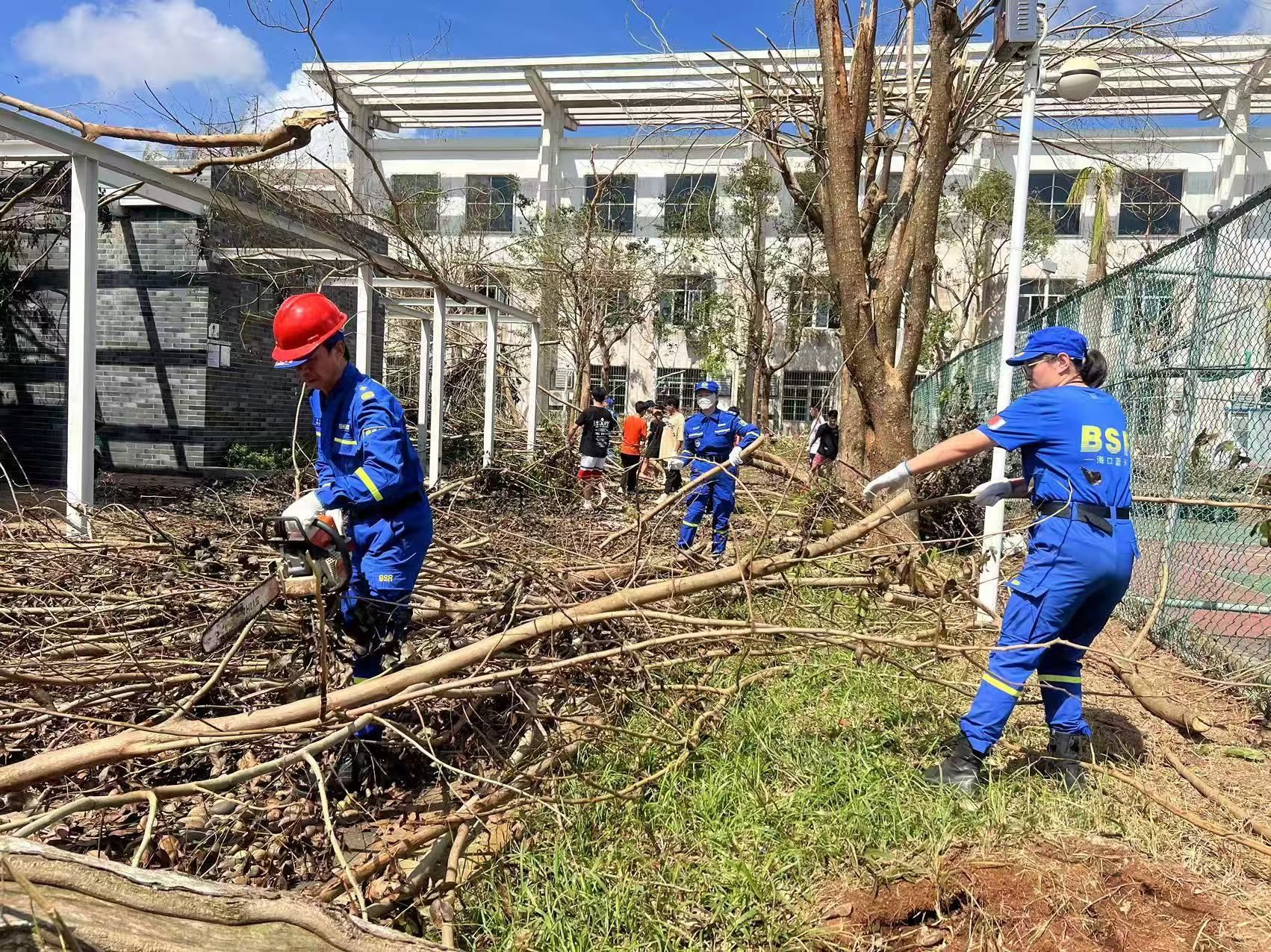 孙琦是2023年9月新入职教师。同时,她还有另一个身份,是专业民间志愿公益救援机构——海口市蓝天救援队的一名成员。在这次超强台风“摩羯”救灾行动中,她和蓝天救援队的队员们无偿支援学校救灾,冲锋在前,连续奋战,披荆斩棘为学校清障开路。